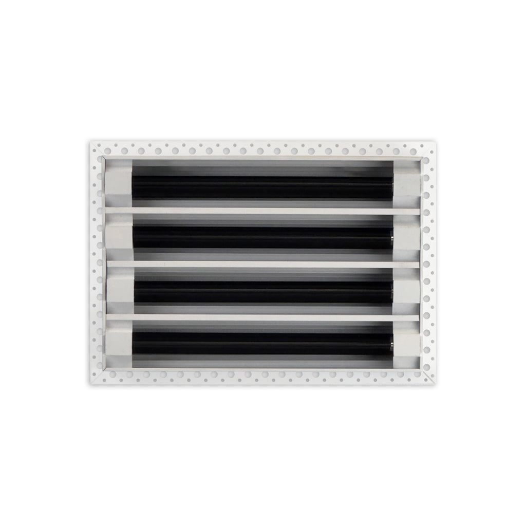 - Texas Buildmart offers Mud In Air Vent Covers also known as Drywall Mud-in White Air Vents. This Mud In Air Vent Cover shoots a 90-degree spread with option to adjust to one side or the other. These have decorative directional dampers. Modern, crisp, clean lines and architecturally appealing. Solid extruded aluminum profile, expertly welded, grinded, and sanded, with reinforcement brackets on the back and a uniform coat of electrostatic paint for a sleek, modern finish and easy maintenance. This white air vent register can be used as a supply air vent cover for ceilings and walls and as a return air vent cover register but looks like a Luxury Drywall Mud-in Vent Cover. If our Mud In Air Vent Cover is used as a Return air vent cover, please make sure the air vent cover is placed in the full open position or remove the directional dampers. Update your Ceiling and Wall Vents with our Mud In Air Vent Covers and it will update the entire look of your Home or Office Space. Rejillas para aire acondicionado de casa blanco. We make all sizes from 6x4 to 30x24 Modern Mud Air Vent Covers for the Modern Day Home. *This is a Design and Utility Patent Pending Product*