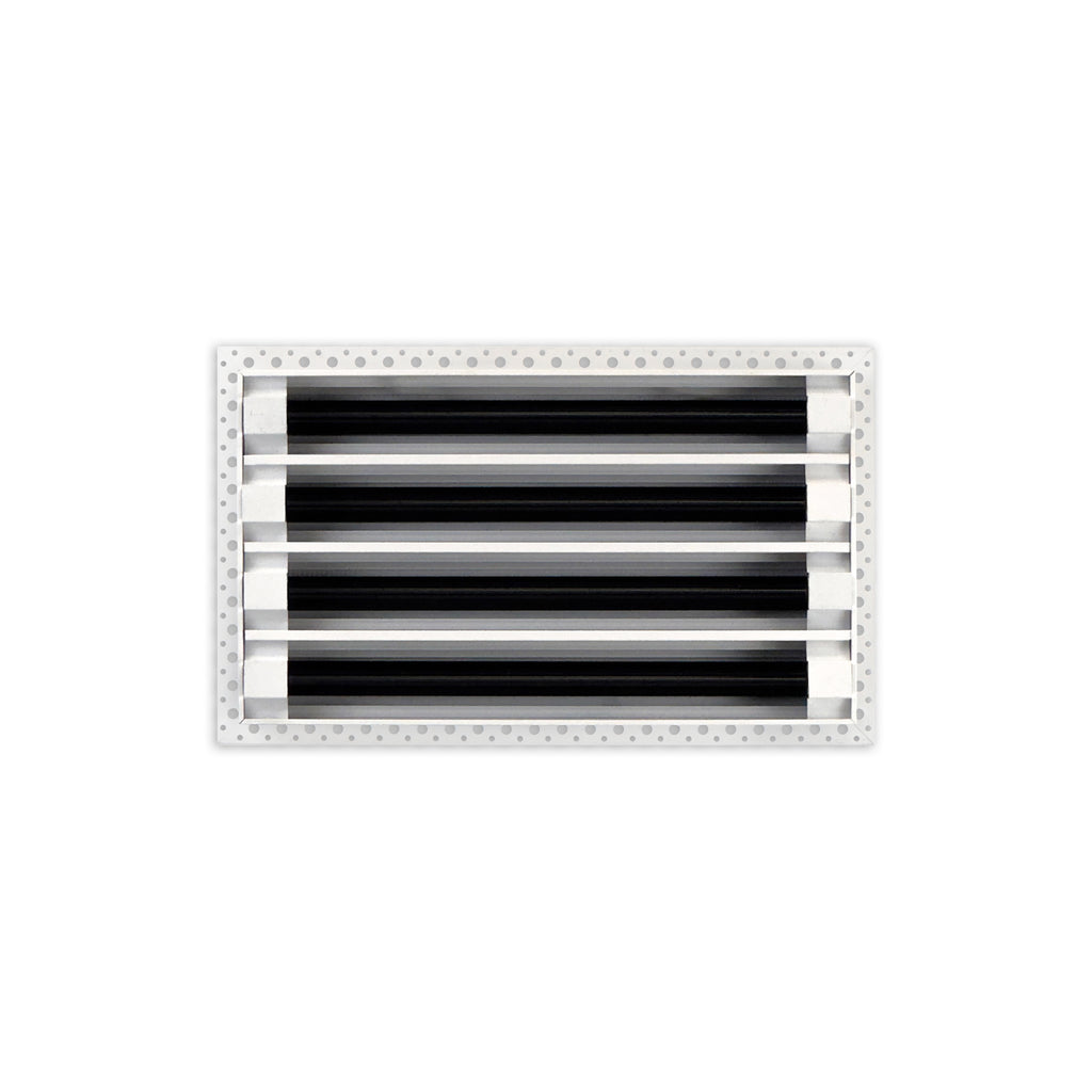 - Texas Buildmart offers Mud In Air Vent Covers also known as Drywall Mud-in White Air Vents. This Mud In Air Vent Cover shoots a 90-degree spread with option to adjust to one side or the other. These have decorative directional dampers. Modern, crisp, clean lines and architecturally appealing. Solid extruded aluminum profile, expertly welded, grinded, and sanded, with reinforcement brackets on the back and a uniform coat of electrostatic paint for a sleek, modern finish and easy maintenance. This white air vent register can be used as a supply air vent cover for ceilings and walls and as a return air vent cover register but looks like a Luxury Drywall Mud-in Vent Cover. If our Mud In Air Vent Cover is used as a Return air vent cover, please make sure the air vent cover is placed in the full open position or remove the directional dampers. Update your Ceiling and Wall Vents with our Mud In Air Vent Covers and it will update the entire look of your Home or Office Space. Rejillas para aire acondicionado de casa blanco. We make all sizes from 6x4 to 30x24 Modern Mud Air Vent Covers for the Modern Day Home. *This is a Design and Utility Patent Pending Product*
