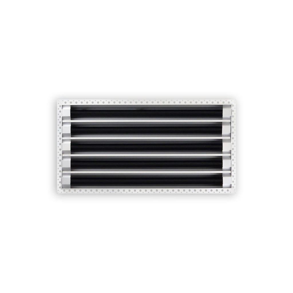 - Texas Buildmart offers Mud In Air Vent Covers also known as Drywall Mud-in White Air Vents. This Mud In Air Vent Cover shoots a 90-degree spread with option to adjust to one side or the other. These have decorative directional dampers. Modern, crisp, clean lines and architecturally appealing. Solid extruded aluminum profile, expertly welded, grinded, and sanded, with reinforcement brackets on the back and a uniform coat of electrostatic paint for a sleek, modern finish and easy maintenance. This white air vent register can be used as a supply air vent cover for ceilings and walls and as a return air vent cover register but looks like a Luxury Drywall Mud-in Vent Cover. If our Mud In Air Vent Cover is used as a Return air vent cover, please make sure the air vent cover is placed in the full open position or remove the directional dampers. Update your Ceiling and Wall Vents with our Mud In Air Vent Covers and it will update the entire look of your Home or Office Space. Rejillas para aire acondicionado de casa blanco. We make all sizes from 6x4 to 30x24 Modern Mud Air Vent Covers for the Modern Day Home. *This is a Design and Utility Patent Pending Product*