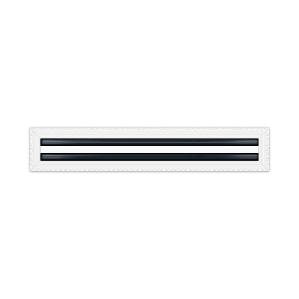 Linear slot diffusers are a type of air diffuser used in heating, ventilation, and air conditioning (HVAC) systems. They are designed to distribute conditioned air evenly throughout a room or space. Linear slot diffusers typically consist of a long, narrow slot or opening that runs along the length of the diffuser. Air is distributed through this slot, and then spread out into the room by a series of slots which each contain deflectors (dampers) that are located within the diffuser slots. Linear slot diffusers are often used in commercial and industrial buildings, such as office buildings, schools, and hospitals, because of their ability to distribute large amounts of air over a wide area. They are also often used in buildings with high ceilings, such as airports, atriums and shopping centers. Linear slot diffusers also come in a variety of sizes and designs to match the specific needs of a building. They can be ceiling-mounted, wall-mounted, or floor-mounted and are made of 100% aluminum. Some can have adjustable slots to control the airflow direction or be equipped with deflectors (dampers) to control the airflow volume. They are commonly used in commercial and industrial buildings, as well as buildings with high ceilings. Ours come in a variety of sizes from 12" to 72” in 1-2-3 Slot Linear Diffusers.