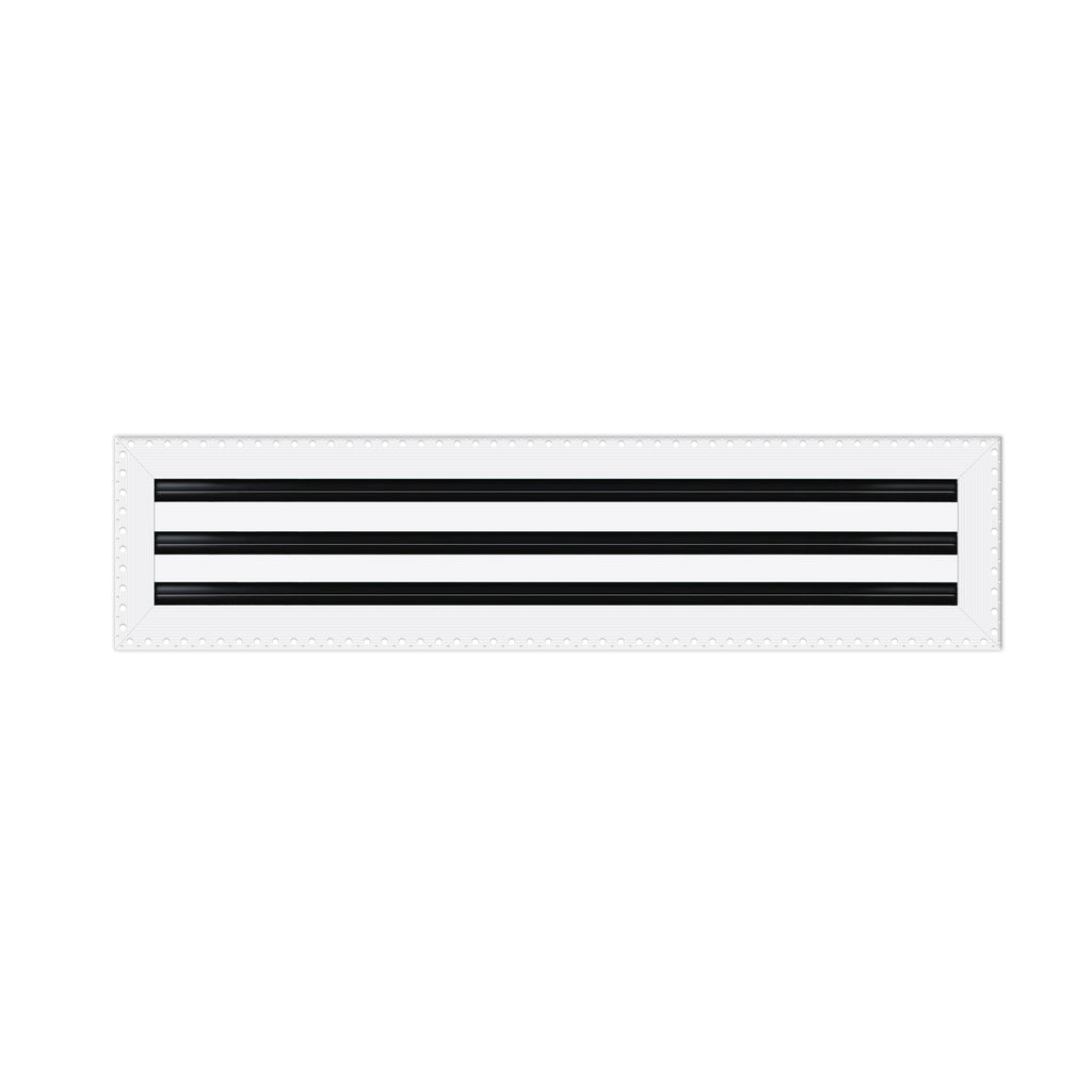 Linear slot diffusers are a type of air diffuser used in heating, ventilation, and air conditioning (HVAC) systems. They are designed to distribute conditioned air evenly throughout a room or space. Linear slot diffusers typically consist of a long, narrow slot or opening that runs along the length of the diffuser. Air is distributed through this slot, and then spread out into the room by a series of slots which each contain deflectors (dampers) that are located within the diffuser slots. Linear slot diffusers are often used in commercial and industrial buildings, such as office buildings, schools, and hospitals, because of their ability to distribute large amounts of air over a wide area. They are also often used in buildings with high ceilings, such as airports, atriums and shopping centers. Linear slot diffusers also come in a variety of sizes and designs to match the specific needs of a building. They can be ceiling-mounted, wall-mounted, or floor-mounted and are made of 100% aluminum. Some can have adjustable slots to control the airflow direction or be equipped with deflectors (dampers) to control the airflow volume. They are commonly used in commercial and industrial buildings, as well as buildings with high ceilings. Ours come in a variety of sizes from 12" to 72” in 1-2-3 Slot Linear Diffusers.