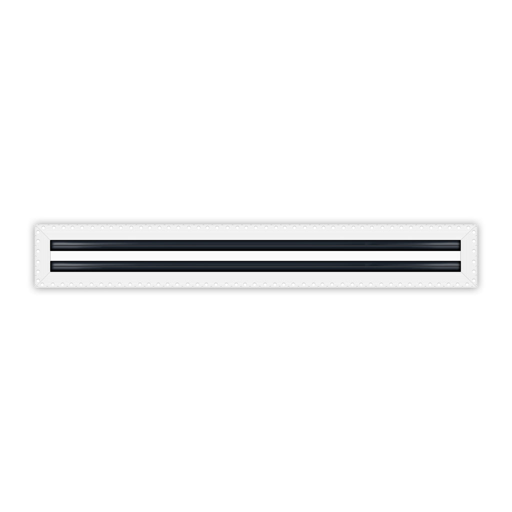 Linear slot diffusers are a type of air diffuser used in heating, ventilation, and air conditioning (HVAC) systems. They are designed to distribute conditioned air evenly throughout a room or space. Linear slot diffusers typically consist of a long, narrow slot or opening that runs along the length of the diffuser. Air is distributed through this slot, and then spread out into the room by a series of slots which each contain deflectors (dampers) that are located within the diffuser slots. Linear slot diffusers are often used in commercial and industrial buildings, such as office buildings, schools, and hospitals, because of their ability to distribute large amounts of air over a wide area. They are also often used in buildings with high ceilings, such as airports, atriums and shopping centers. Linear slot diffusers also come in a variety of sizes and designs to match the specific needs of a building. They can be ceiling-mounted, wall-mounted, or floor-mounted and are made of 100% aluminum. Some can have adjustable slots to control the airflow direction or be equipped with deflectors (dampers) to control the airflow volume. They are commonly used in commercial and industrial buildings, as well as buildings with high ceilings. Ours come in a variety of sizes from 12" to 72” in 1-2-3 Slot Linear Diffusers.