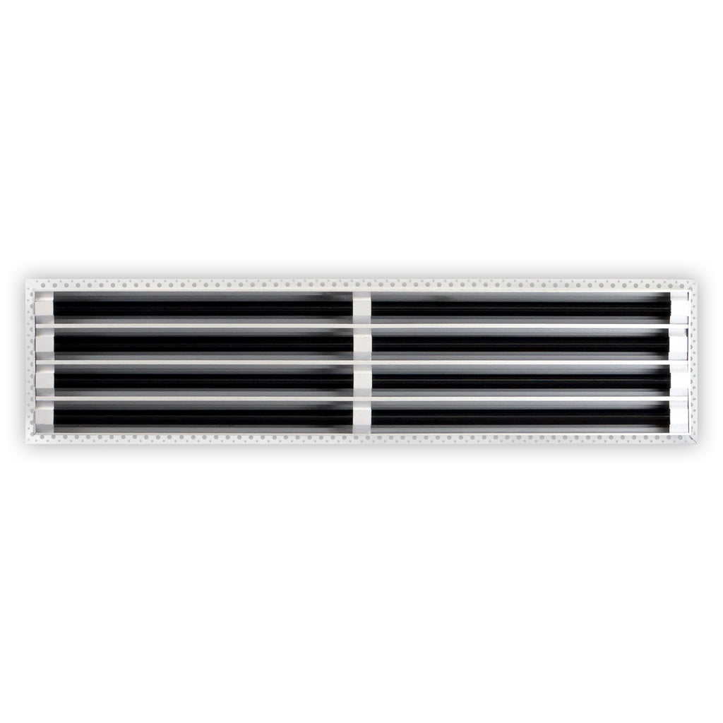 Linear slot diffusers are a type of air diffuser used in heating, ventilation, and air conditioning (HVAC) systems. They are designed to distribute conditioned air evenly throughout a room or space. Linear slot diffusers typically consist of a long, narrow slot or opening that runs along the length of the diffuser. Air is distributed through this slot, and then spread out into the room by a series of slots which each contain deflectors (dampers) that are located within the diffuser slots. Linear slot diffusers are often used in commercial and industrial buildings, such as office buildings, schools, and hospitals, because of their ability to distribute large amounts of air over a wide area. They are also often used in buildings with high ceilings, such as airports, atriums and shopping centers. Linear slot diffusers also come in a variety of sizes and designs to match the specific needs of a building. They can be ceiling-mounted, wall-mounted, or floor-mounted and are made of 100% aluminum. Some can have adjustable slots to control the airflow direction or be equipped with deflectors (dampers) to control the airflow volume. They are commonly used in commercial and industrial buildings, as well as buildings with high ceilings. Ours come in a variety of sizes from 12" to 72” in 1-2-3 Slot Linear Diffusers.