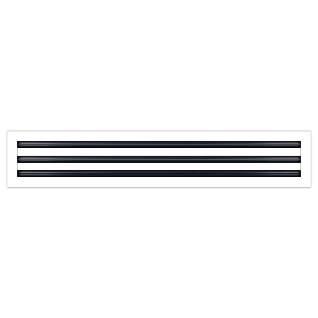 - Texas Buildmart offers Modern AC Vent Covers also known as High Quality Standard Linear Slot Diffusers. This Modern AC Vent Cover shoots a 90-degree spread with option to adjust to one side or the other. These have decorative directional dampers. Modern, crisp, clean lines and architecturally appealing. Solid extruded aluminum profile with welding - Electrostatic Paint which makes it easy to clean because of it's dust-resistance. This white air vent register can be used as a supply air vent cover for ceilings, walls, and floors. This vent cover was designed to be decorative and not structural. You can use this as a floor vent cover, but it is not designed to support weight, adding any type of weight is not recommended. This vent can be used as a return air vent cover as well. This register is not only a vent cover, but it looks like a Modern Contemporary looking fixture. If our Modern AC Vent Cover is used as a Return air vent cover, please make sure the air vent cover is placed in the full open position or remove the directional dampers. Update your Ceilings, Walls & Floor Vents with our Modern AC Vent Covers and it will update the entire look of your Home or Office Space. Rejillas para aire acondicionado de casa blanco. We make all sizes from 6x4 to 30x24 Standard Sized Modern AC Vent Covers for the Modern Day Home. *This is a Design and Utility Patent Pending Product*